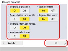 È possibile impostare i seguenti segnali acustici. La macchina emette i segnali acustici riportati di seguito: