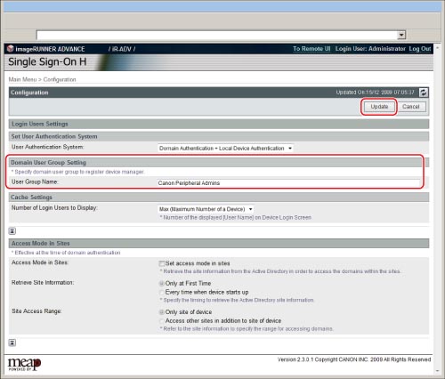 Immettere il nome del gruppo in [User Group Name] → fare clic su [Update].