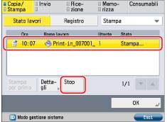 Selezionare [Copia/Stampa] → [Stato lavori].