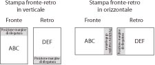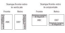 Per la stampa in fronte-retro, è possibile che l'orientamento dell'immagine sul lato posteriore dei fogli cambi utilizzando il modo Posizione rilegatura.