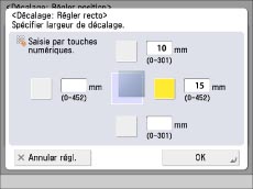 Se si seleziona [Tramite tasti numerici], l'immagine originale potrebbe risultare parzialmente tagliata sulla copia. Il valore dipende dal formato dell'originale o della carta e dalla distanza specificata per lo spostamento.