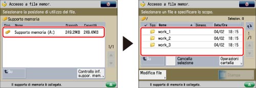 In questa sezione viene riportata, come esempio, la procedura per la stampa di file memorizzati nel supporto memoria.