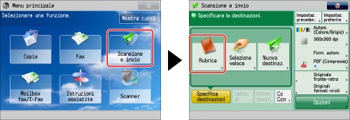 Se si specifica un indirizzo e-mail come destinazione I-fax, dal server si possono richiamare solo le informazioni riguardanti l'indirizzo I-fax. Per specificare le impostazioni che corrispondono alle condizioni di ricezione del destinatario, selezionare [Dettagli] nella schermata Scansione e invio.