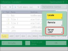 [Variazione rubrica] viene visualizzato solo quando sono registrati sia la rubrica remota che il server LDAP. Se sulla macchina è registrato solo il server LDAP, viene visualizzato [A server LDAP].
