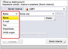 È possibile utilizzare organizzazione/unità organizzativa come categorie di ricerca solo se le informazioni sono state registrate nel server LDAP.