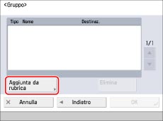 La funzione Indirizzo di gruppo consente di creare un gruppo. In un singolo gruppo è possibile registrare diversi tipi di destinazioni (ad esempio le destinazioni per e-mail, I-fax o file server).