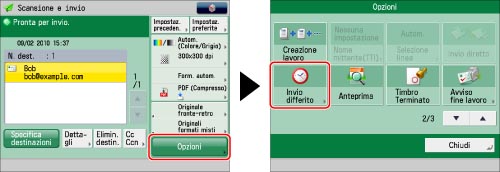 È possibile controllare lo stato, eliminare o modificare le destinazioni del documento che si desidera trasmettere in differita. (Vedere "Controllo e annullamento dei lavori di invio".)