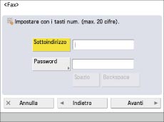 Selezionare [Sottoindirizzo] → immettere il sottoindirizzo.