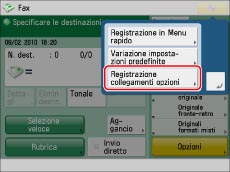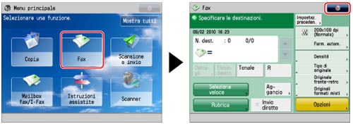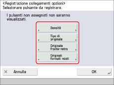 Sulla schermata delle funzioni principali fax vengono visualizzate due opzioni di selezioni veloci. [Originale fronte-retro] e [Originali formati misti] vengono visualizzati come predefiniti. Queste selezioni veloci possono essere modificate nelle funzioni più utilizzate.