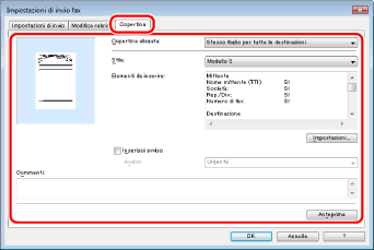 Il numero di destinazioni che è possibile inviare contemporaneamente dipende dalle condizioni in cui la copertina è stata allegata. Per informazioni dettagliate, consultare la guida in linea. (Vedere "Visualizzazione della Guida in linea.")