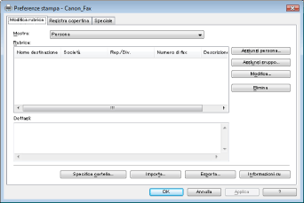 Durante l'invio di fax, è possibile modificare le impostazioni predefinite se necessario. Per cambiare le impostazioni, configurarle nella finestra di dialogo [Stampa] dall'applicazione.
