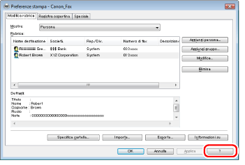 È possibile visualizzare la guida in linea facendo clic su [?] nella schermata del driver del fax.