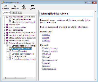 Per ricercare informazioni fare clic su [Contenuto]/[Indice]/[Cerca].