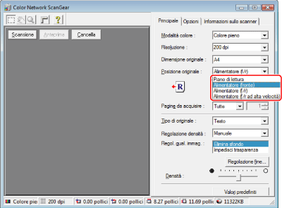 Nella scheda [Principale] specificare le impostazioni necessarie per la scansione.
