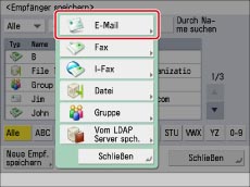 Berühren Sie nacheinander die Tasten [Empfänger definieren] → [Empfänger speichern] → [Neue Empf. speichern].