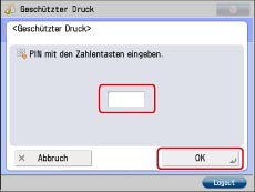 Wenn ein geschütztes Dokument gedruckt wird, geben Sie das Passwort ein, das Sie dem Dokument ursprünglich mithilfe des Druckertreibers zugewiesen haben. Wenn ein aktueller oder ein reservierter Job vorliegt, wird das Dokument in der Druckwarteschlange eingereiht.