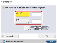 Wenn Sie keine PIN eingeben möchten, können Sie das System auch nur durch die Eingabe einer Abteilungs ID verwenden.
