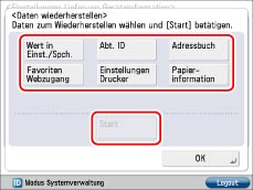 Wählen Sie die Informationen, die wiederhergestellt werden sollen → Berühren Sie die Taste [Start].