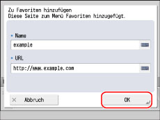 Für jeden Favoritennamen und jede URL können bis zu 255 Zeichen eingegeben werden.