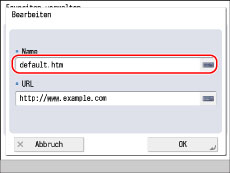 Durch Berühren der Taste [OK] ohne die vorherige Eingabe von Zeichen im Namensfeld wird die URL-Adresse als Name registriert.