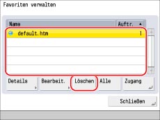 Wenn Sie eine registrierte Webseite aus den Favoriten löschen möchten: