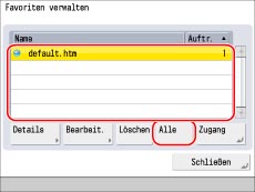 Sie können die Namen der in den Favoriten gespeicherten Webseiten ändern und nicht mehr benötigte Webseiten löschen.