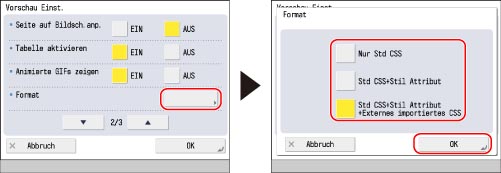 Wählen Sie [CSS1], [CSS2] oder [CSS3].