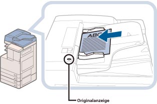Sie können Originale unterschiedlicher Formate in den Einzug einlegen, wenn Sie die Funktion <Unterschiedliche Originalformate> aktivieren. Nähere Informationen finden Sie in den folgenden Abschnitten: