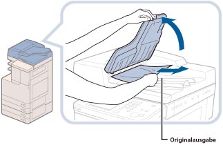 Wenn der Scanvorgang abgeschlossen ist, nehmen Sie die Originale aus der Originalausgabe um Papierstaus zu vermeiden.
