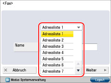 Berühren Sie die Auswahlliste → Wählen Sie ein Adressliste (Adressliste 1 bis 10) aus.