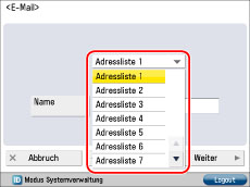 Berühren Sie die Auswahlliste → Wählen Sie ein Adressliste (Adressliste 1 bis 10) aus.
