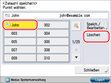 Die folgenden Icons werden angezeigt, um den gespeicherten Empfängertyp für Zielwahltasten anzugeben, unter denen bereits eine Adresse gespeichert ist: