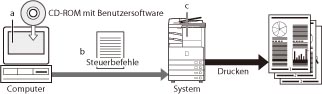 Normalerweise werden die Aktionen, die beim Drucken von Daten über einen Computer ausgeführt werden, von Steuerbefehlen gelenkt, die von einem Druckertreiber erstellt werden. Steuerbefehle stellen ein Befehlssystem zum Steuern eines Druckers dar. Wenn Sie z. B. mit einem Druckertreiber drucken, wird das Drucken von Daten folgendermaßen anhand der Befehle gesteuert.