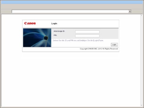 Geben Sie zum Anmelden am Remote UI oder an einer MEAP-Anwendung (einschließlich Login-Anwendungen) eine Abteilungs ID/PIN oder die ID Systemmanager/System PIN ein.