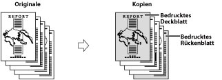 Sie können auf dem Deckblatt kopieren. Sie können für das Deckblatt farbiges Papier, schweres Papier oder andere Papiertypen auswählen.