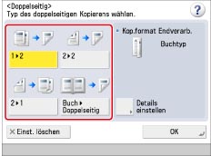 Wenn Sie [Deck/Rück. Doppelseitig] beim Kopieren mit der Funktion <Buch