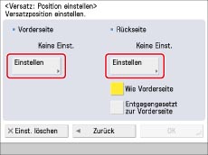 Berühren Sie die Taste [Einstellen] unter <Vorderseite> oder <Rückseite>.