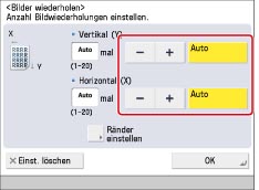 Geben Sie die Anzahl der Wiederholungen für senkrechte und waagerechte Richtung ein.