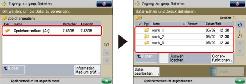 Sie können einen gewünschten Farbmodus als Standardeinstellung festlegen, indem Sie die Standardeinstellungen für Zugang zu gespeicherten Dateien ändern.(Vgl. Abschnitt "Definieren der Einstellungen für gespeicherte Dateien".)