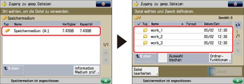 Berühren Sie die Taste [Zugang zu gesp. Dateien] → [Speichermedium].
