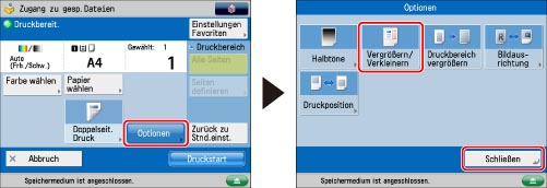 Berühren Sie nacheinander die Tasten [Optionen] → [Vergrößern/Verkleinern] → [Schließen].