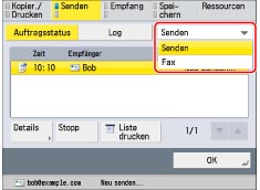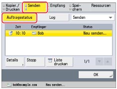 können Sie einen Sendeauftrag abbrechen, der derzeit gesendet wird oder auf das Versenden wartet. |
