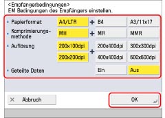 Wählen Sie die Empfängerbedingungen → Bestätigen Sie durch Berühren der Taste [OK].