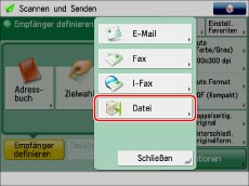 Berühren Sie nacheinander die Tasten [Scannen und Senden] → [Neuer Empfänger].