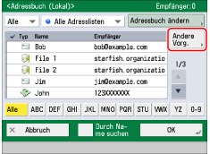 Nähere Informationen zur Suche nach im Adressbuch gespeicherten Empfängern finden Sie unter Adressbuchdisplay im Abschnitt "Übersicht über diese Funktion".