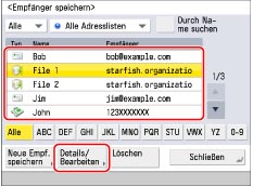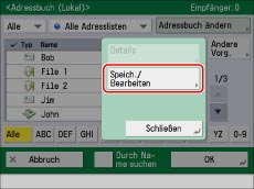 Wählen Sie den Empfänger, den Sie ändern wollen → Berühren Sie die Taste [Details/Bearbeiten].