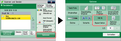 Wenn [PDF(Nachzeichnen & Glätten)], [PDF (Kompakt)], [PDF (OCR)], [XPS (Kompakt)] oder [XPS (OCR)] als Dateiformat eingestellt wird, können Sie nur mit einem Zoomfaktor von [1:1(100%)] oder [Auto] senden.