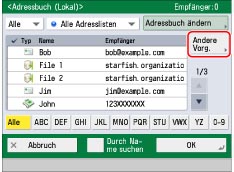 Berühren Sie nacheinander die Tasten [Scannen und Senden] → [Adressbuch].