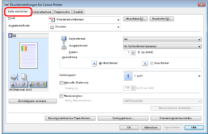 Nähere Informationen zum Anzeigen des Druckertreiber-Bildschirms finden Sie unter "Drucken" oder "Konfigurieren der Standard-Druckeinstellungen".