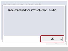 Wählen Sie das zu entfernende Speichermedium → Berühren Sie die Taste [Entfernen].